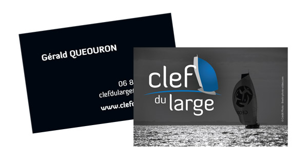 Création du logo et des premiers supports de communication de la société « Clef du Large » « Clef du Large » – Gérald Quéouron : Enseignement sportif et navigation sur Class 40 > Création du logo, des cartes de visite, du bandeau mail et modification de l’affiche. > Création de la plaquette commerciale et du dossier de présentation (clefdularge.com)