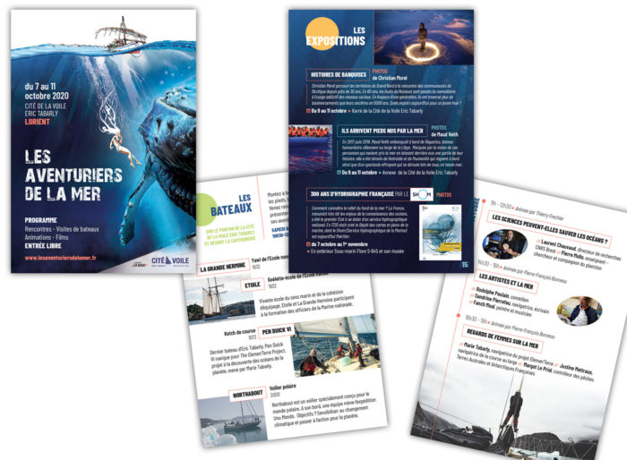 Pour la deuxième année consécutive, les Aventuriers de la Mer me confient la réalisation du programme de l’événement. Cette année, le programme est si riche qu’il méritait 16 pages : rencontres, visites de bateaux, animations et films sont au rendez-vous. Du 7 au 11 octobre 2020, à Lorient, le Festival des Aventuriers de la mer…
